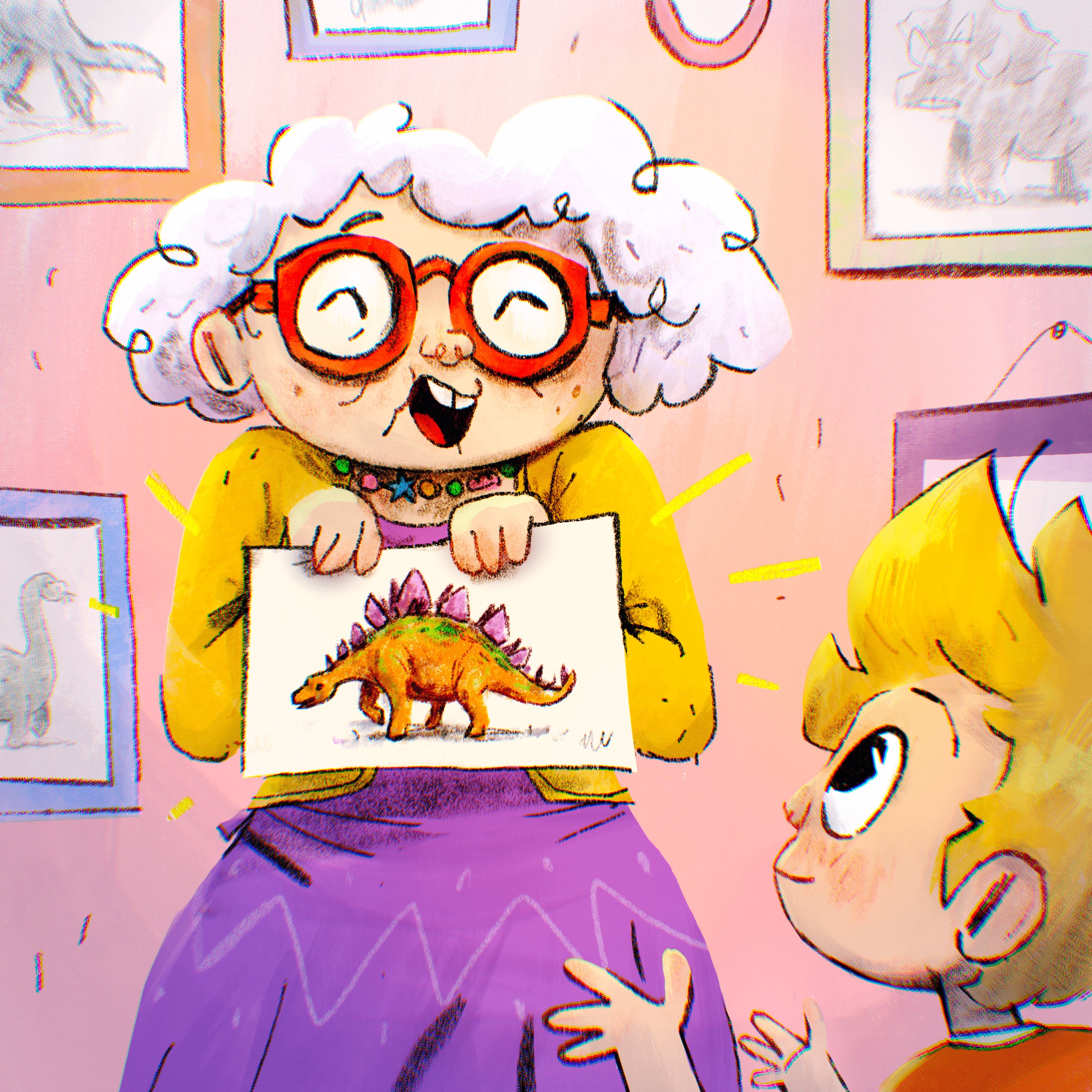 « En voyant le dessin, elle sautillait de joie.