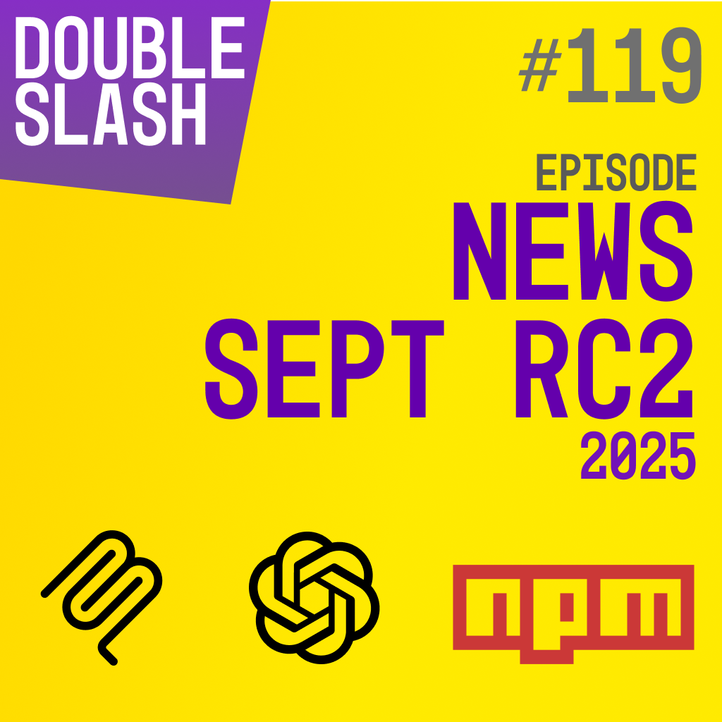 Un épisode news dans lequel nous évoquons : une page Nuxt changelogs, Dia et Arc qui partent chez Atlassian, Google qui conserve Chrome, plusieurs packages NPM compromis, une librairie AI Elements qui devient open-source, Telex IA, comment créer des fichiers llms.txt, comment bloquer les bots AI, FeedSmith qui passe en V2, un article pour conserver son package.json sous contrôle, Codex qui passe sur GPT-5, Apertus, une IA vraiment open-source, et un SDK PHP pour faire des serveurs MCP. Retrouvez toutes les notes et les liens de l'épisode sur cette page : https://double-slash.dev/podcasts/news-sept25-rc2/