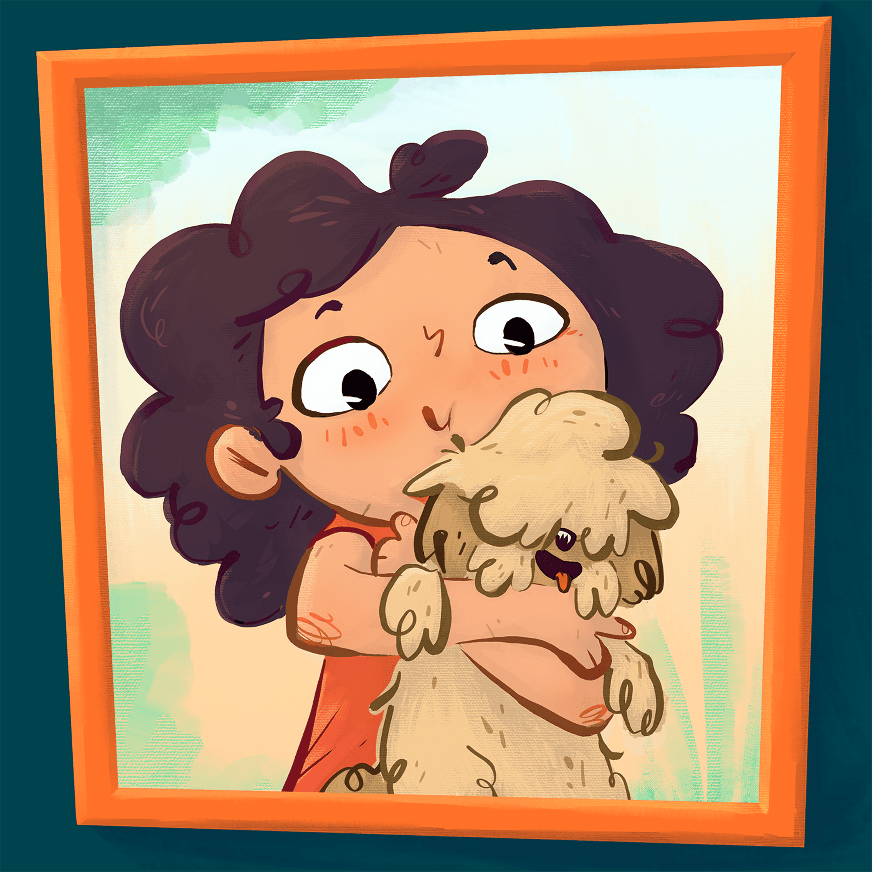 Amelia est en train de jouer dans le jardin avec Toto, une petite serpillère sur patte