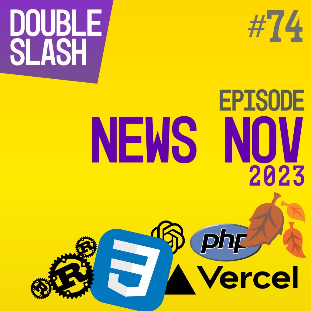 Un épisode news pour novembre 2023. On parle des dernières conférences en cette fin d'année, la Next JS Conf, Open AI. Mais aussi le retour en force d'Angular. Et aussi des tools et des tips CSS. Retrouvez toutes les notes et les liens de l'épisode sur cette page : https://double-slash.dev/podcasts/newsnov23/